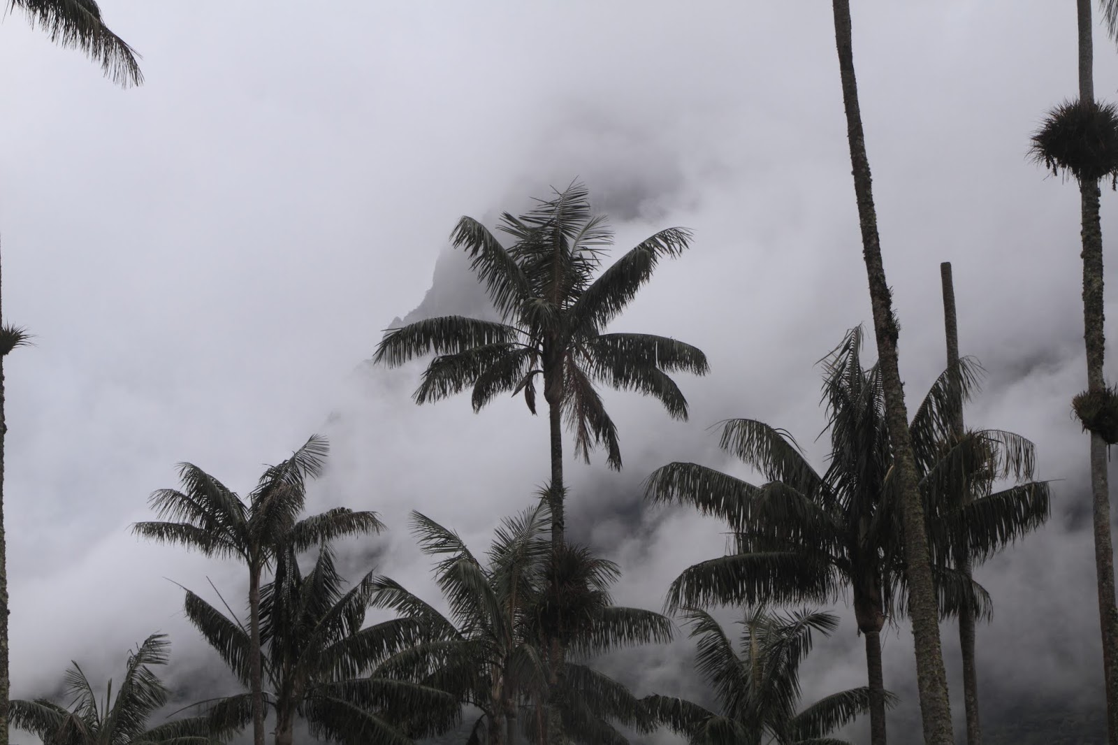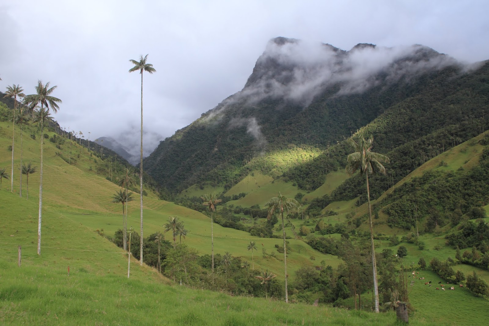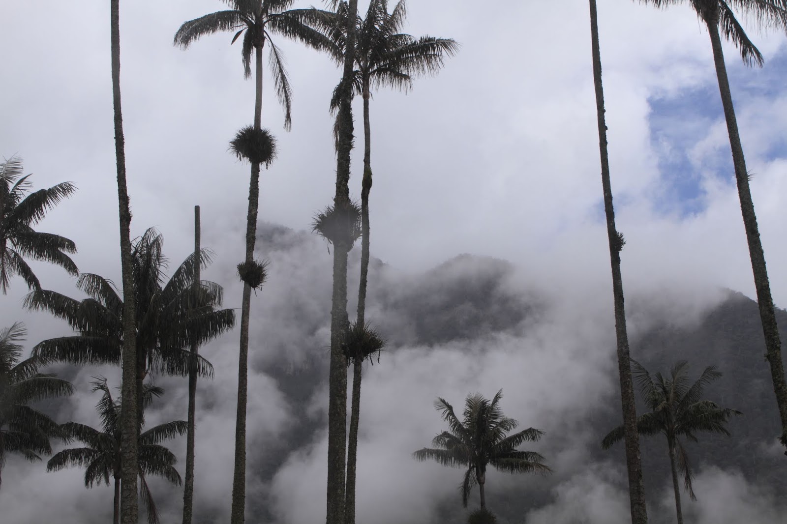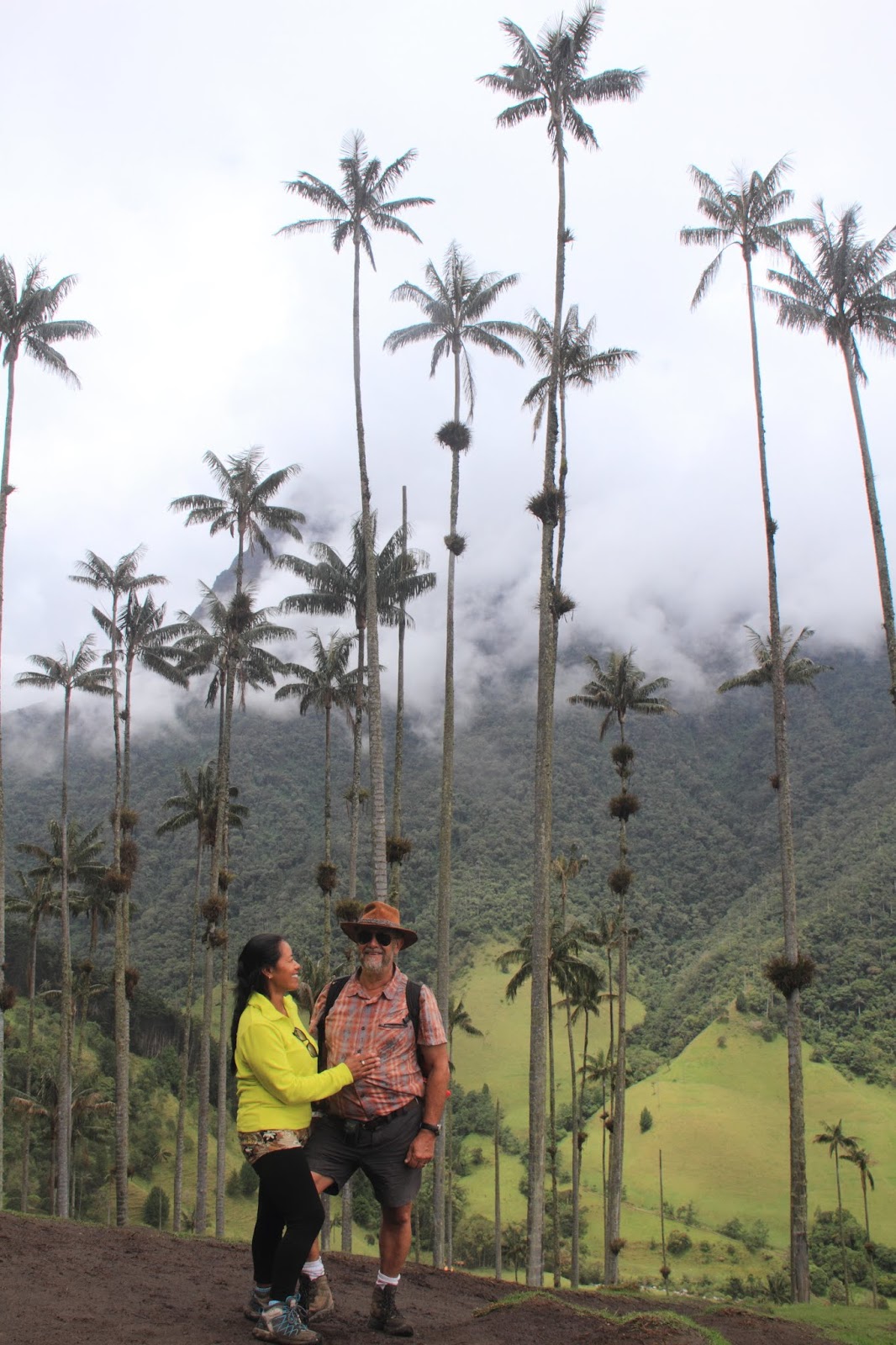 Desde Salento subimos al Valle de Cócora en donde un mínimo resquicio en el tiempo lluvioso que últimamente es la norma, nos permitió una gran caminata (cinco horas) para recorrer un sendero (con dos peajes) que nos internó ligeramente en el Parque de los Nevados. Pudimos ver el precioso paisaje de las laderas con las Palmas de Cera, una estética palmera con las palmas al final de un recto y vertical tronco de hasta sesenta metros de altura y disfrutar de la experiencia de fotografiar los colibríes más confiados que hemos encontrado hasta el momento.