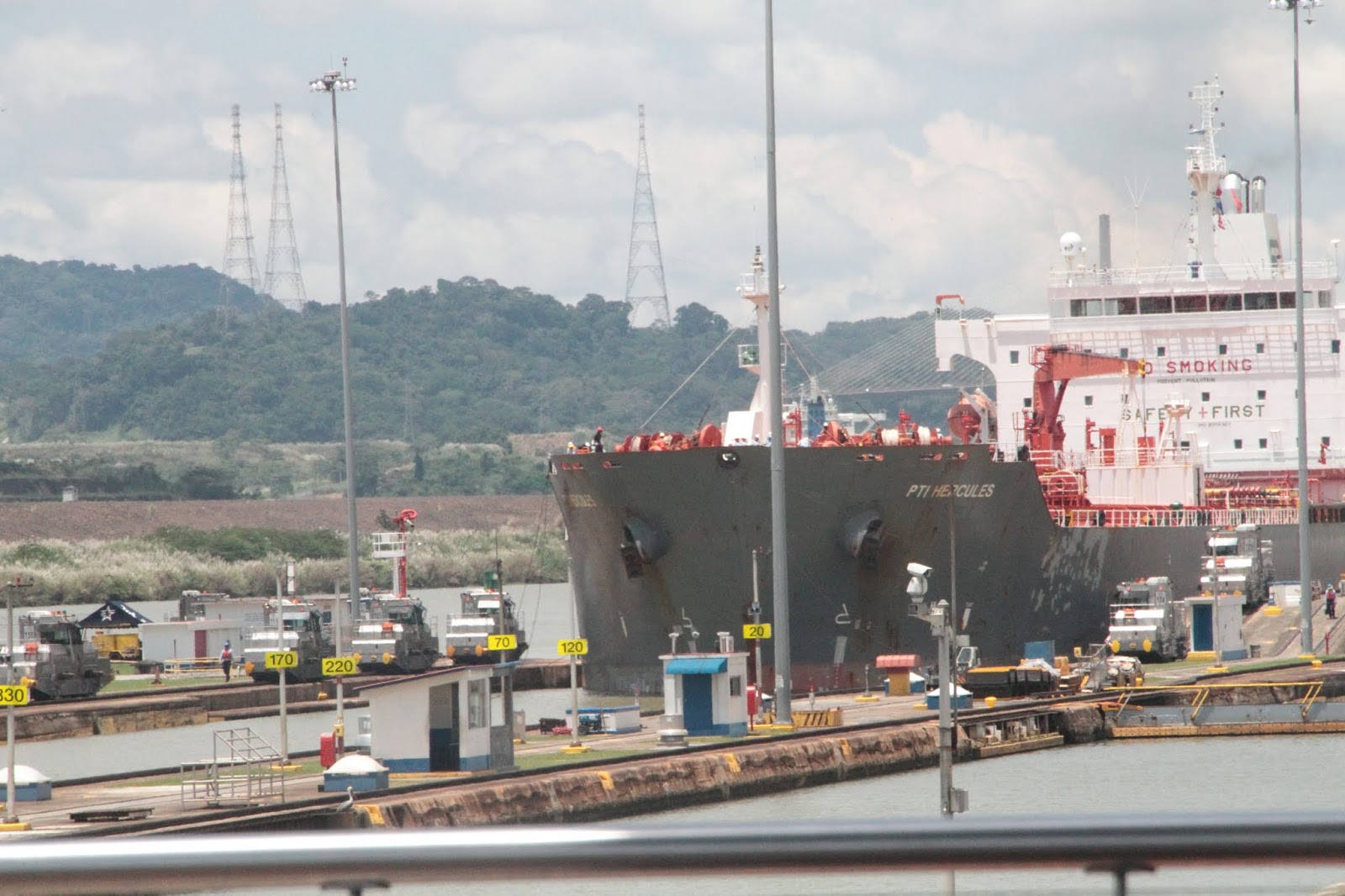 Desde allí salimos hacia las esclusas de Miraflores, las más próximas al océano Pacífico y que están habilitadas para su visita que resultó muy interesante. Por allí circulan entre 35 y 40 naves diarias que deben abonar entre 200.000 y 450.000 dólares como peaje de tránsito. El canal lleva en servicio más de 100 años y actualmente está terminado un nuevo paso paralelo que permite el tránsito de barcos hasta cuatro veces mayores de los que podían pasar por las primera esclusas.