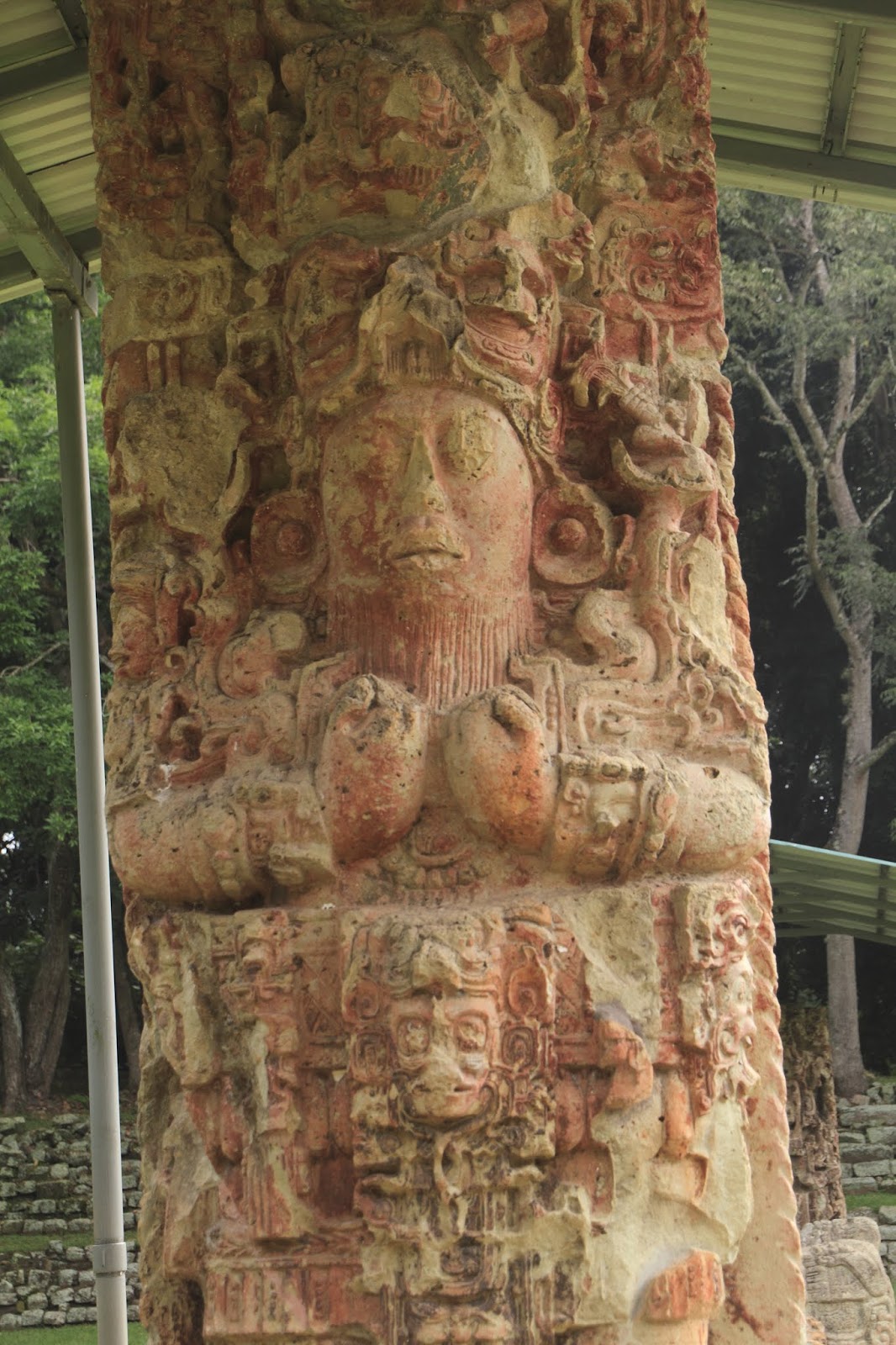 Y llegamos a Copán. El parque arquelógico, aun un poco precario acoge las ruinas de la que fue una de las grandes ciudades mayas. Destaca la Escalinata jeroglífica, aunque protegida por un antiestético y mal situado toldo, es realmente espectacular.