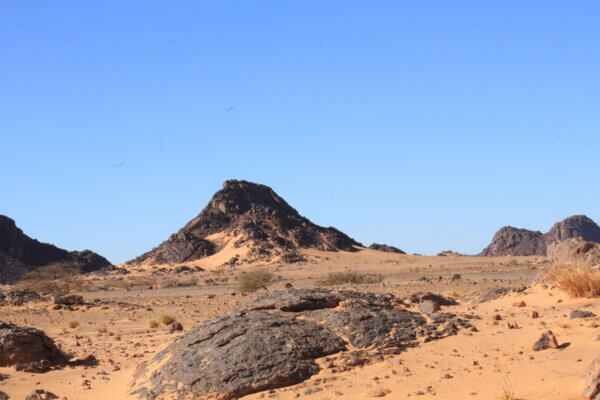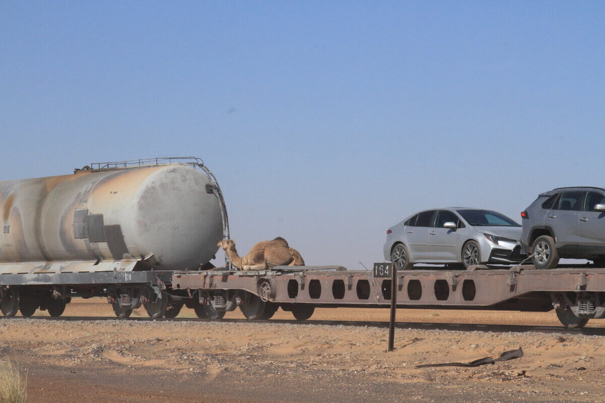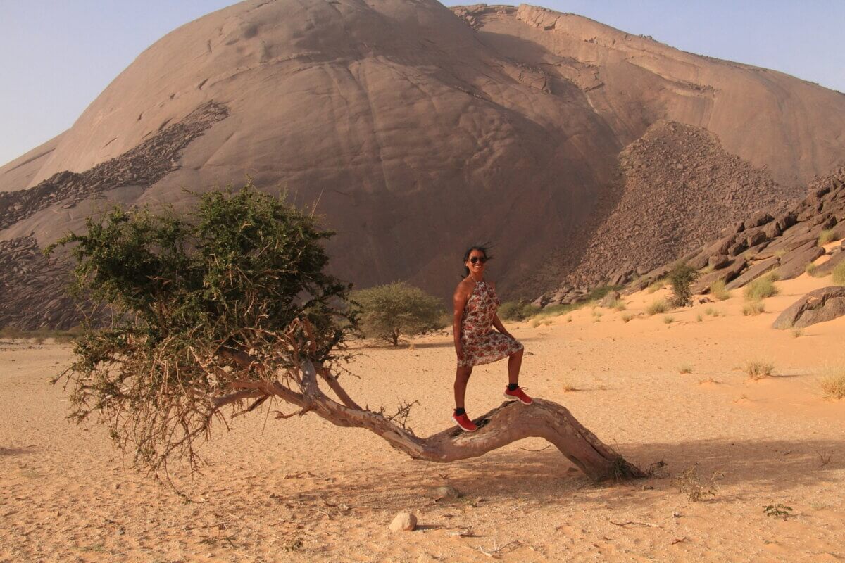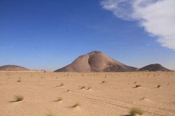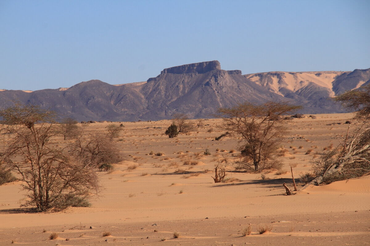 Después de aprovisionarnos de agua y gasoil a tope, en las proximidades de Bou Lanouar tomamos la pista que discurre paralela a la vía del ferrocarril que transporta el mineral desde las minas de Zouerat hasta Nouadhubou. Esta pista nos iba a llevar hasta El monolito de Ben Amira (según parece el segundo por tamaño del mundo), en donde planeábamos hacer un alto de varios días. Siguiendo el planteamiento que nos habíamos fijado, rodábamos desde las nueve de la mañana hasta algo más de mediodía y nos deteníamos en algún entorno particularmente agradable y bonito hasta el día siguiente. De esta forma en cuatro etapas llegamos hasta Ben Amira y acampamos a sotavento de la gran roca (el viento seguía fastidiando a fondo).