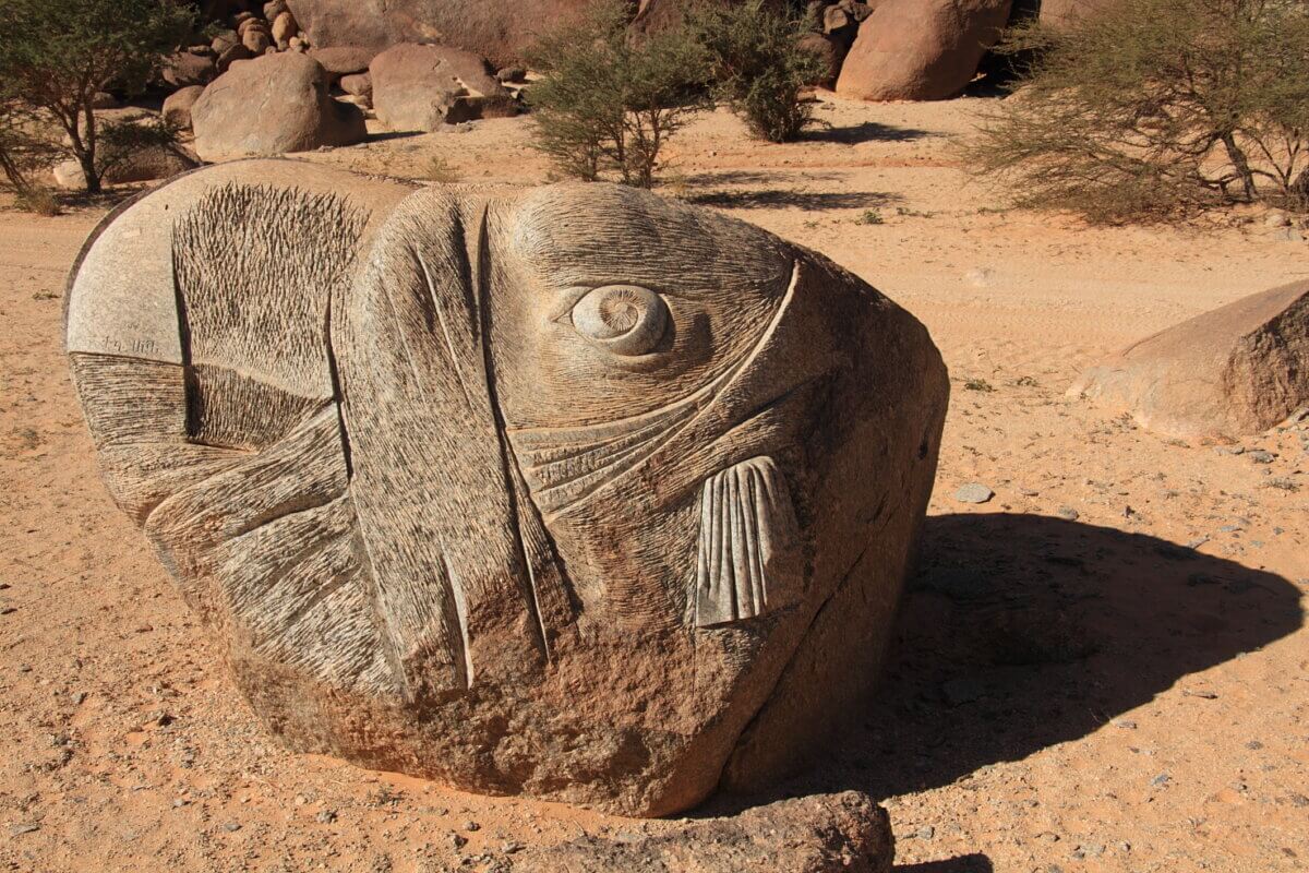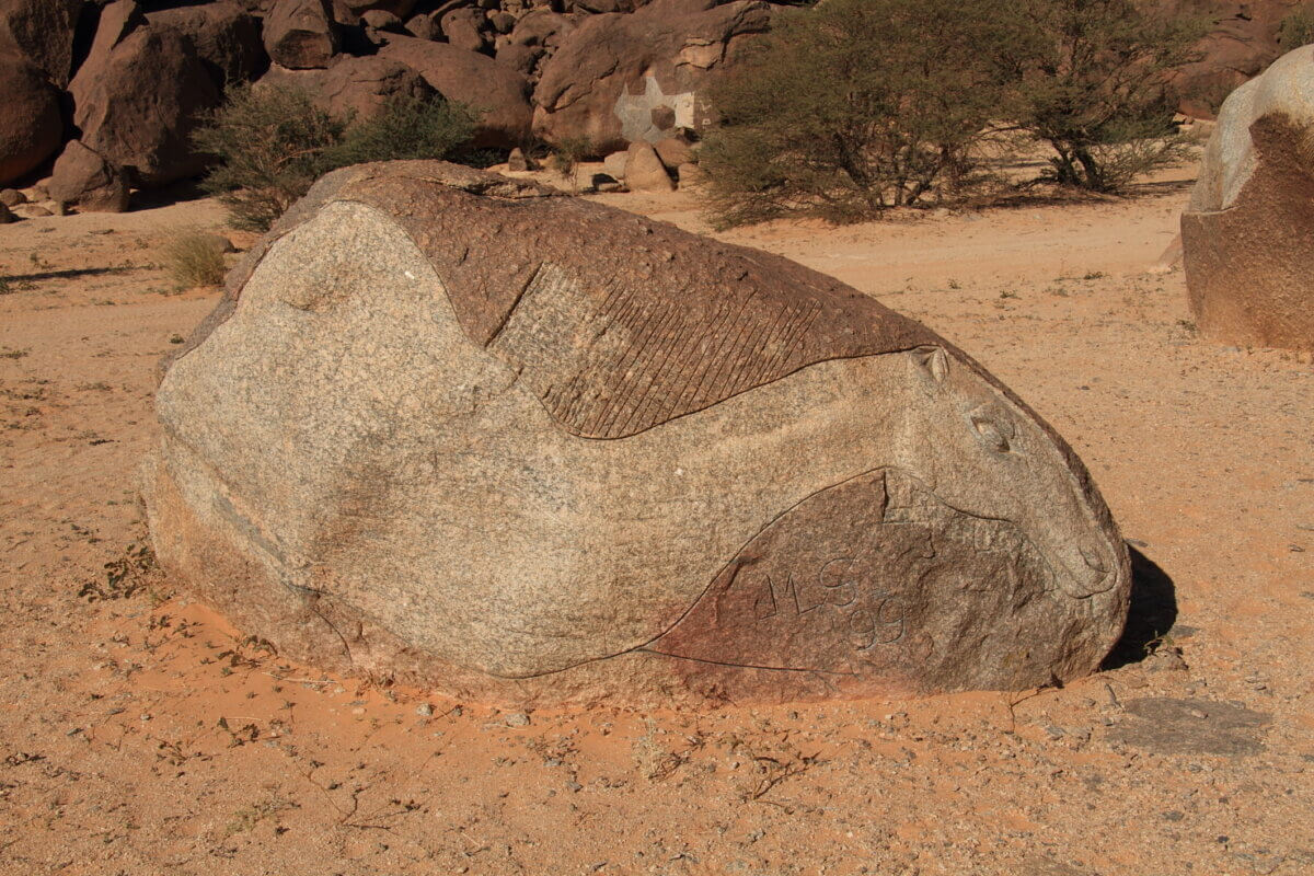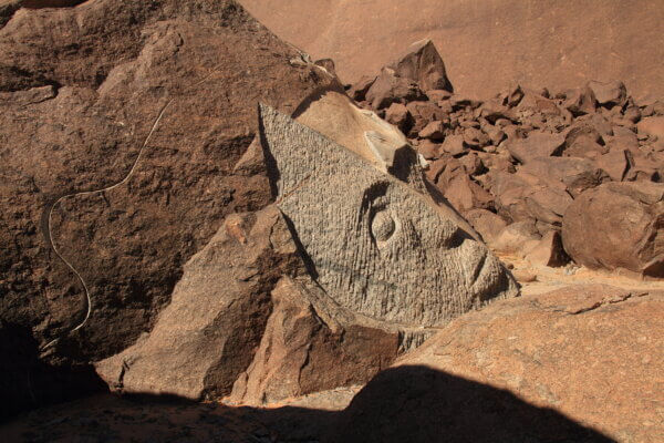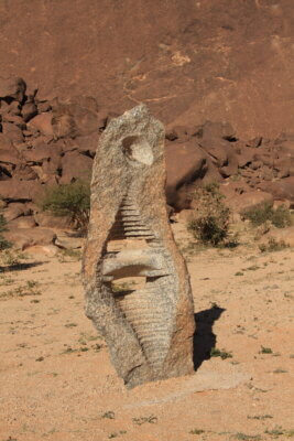 Allí pasamos tres días de paseos, buenas comidas, algunas reparaciones e incluso, en un Land Rover conducido por un local, nos acercamos a otra gran roca cercana, conocida como Aisha a cuyo alrededor alguien se dedicó hace algunos años a esculpir las rocas dejando unas cuantas obras curiosas de ver y de las que no podemos decir mucho porque no hemos encontrado información al respecto.