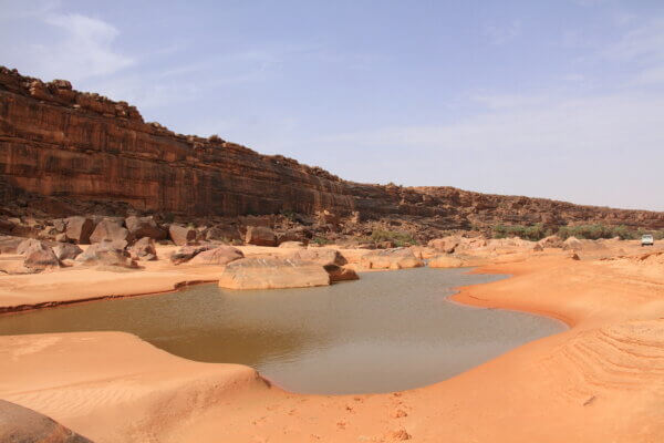 Después de unas cuantas bonitas y tranquilas acampadas en ruta y de repostar agua en Tidjikja llegamos a N´Beika, un caótico pueblo en el que arranca la pista que lleva hasta la Guelta de Matmata en donde sobreviven los últimos cocodrilos de Mauritania.