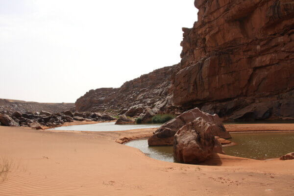 El coche no puede llegar hasta el lago y es necesario recorrer a pie algo más de un kilómetro por un espectacular cañón lleno de lagunas que, al estar en la arena y con el agua de un bonito color turquesa, proporcionan un paisaje muy espectacular.